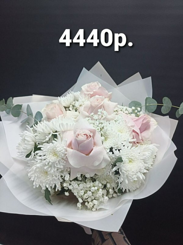Цены здесь недорогие, особенно по сравнению с другими цветочными рядом. Персонал вежливый, а обслуживание приятное. Букет сотрудники собрали отлично, все мои предпочтения услышали — и по количеству цветов, и по их расположению.