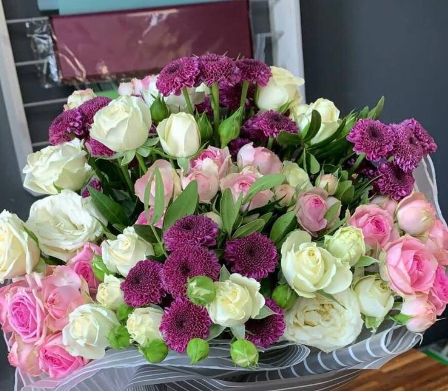Заказывала букеты в нежных пастельных тонах на день рождения, цветы были очень красивые. Всё было аккуратно упаковано, сверху даже сделали дополнительную защиту — просто замечательно!